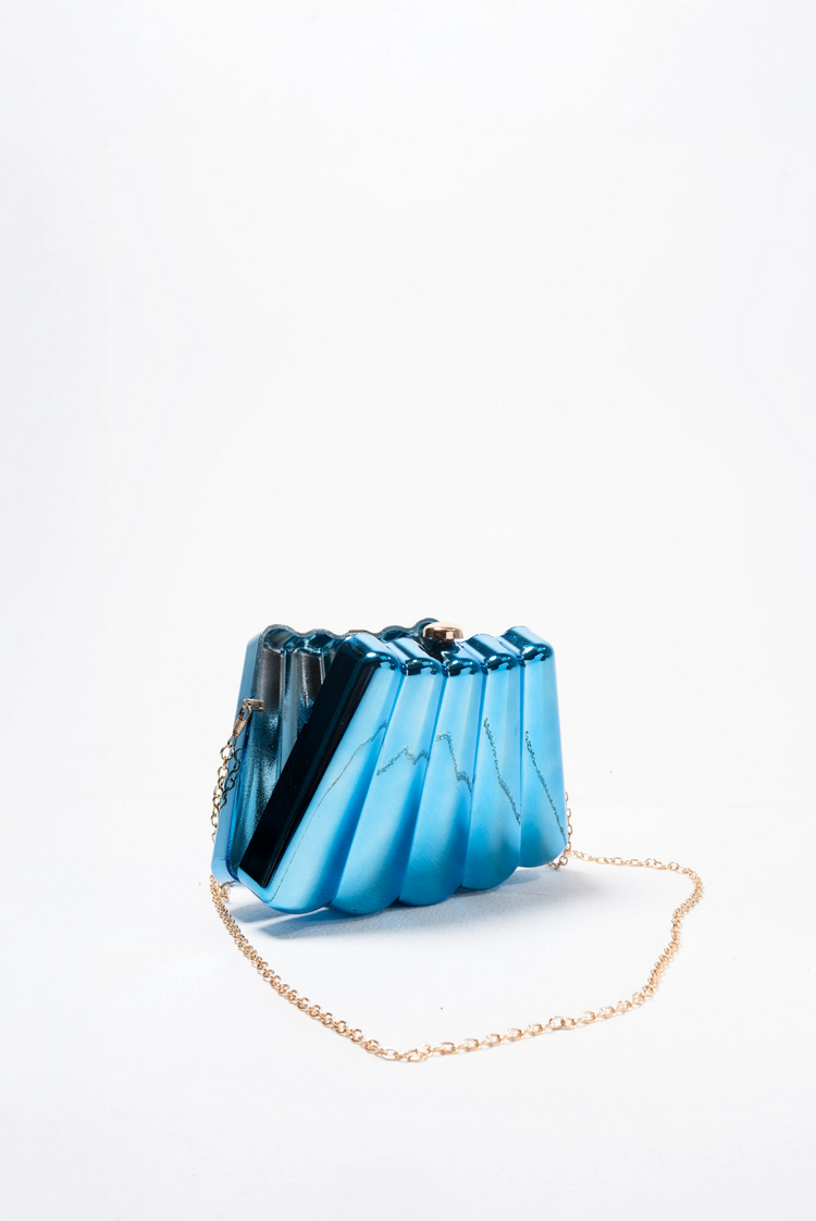 Ignite your fit with futuristic energy—claim the MANACA Azure Prism Clutch and make the streets your runway.