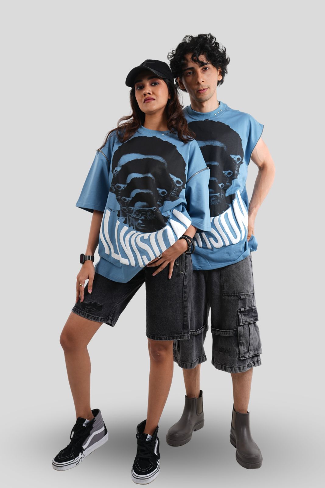 The ILLVISION Tech Tee is a fusion of innovation and streetwear aesthetics. Designed with a detachable side chain, this versatile piece transforms effortlessly into a stylish muscle tee. The striking screen print brings the Illvision concept to life, adding depth and intrigue to the design. Pair it with cargo pants, sneakers, and bold accessories for a statement look.