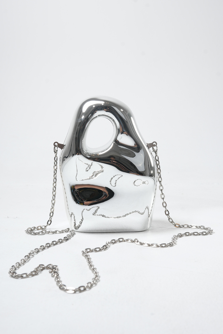 The Ion Core Clutch is a statement of pure sculptural power — a seamless blend of art, architecture, and futurism. Its fluid silhouette and mirror-polished chrome finish make it feel like a piece of modern design pulled straight from the future. The organically shaped handle provides a natural, ergonomic grip, while the compact form makes it a versatile piece for both statement styling and functional carry. Minimal yet bold, sleek yet disruptive — this is not just a bag; it’s a design evolution.