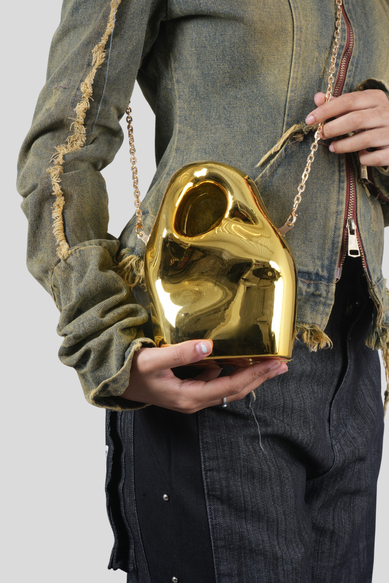 The MANACA Nova Core CASE is a sculptural statement born from the collision of art, architecture, and street culture. With its fluid, organic silhouette and high-gloss gold finish, this piece radiates futuristic energy and uncompromising presence. The asymmetrical design creates a bold visual language, while the smooth, curved structure feels like holding a piece of wearable art. Lightweight yet impactful, the Nova Core transitions effortlessly from statement daywear to high-octane night looks.