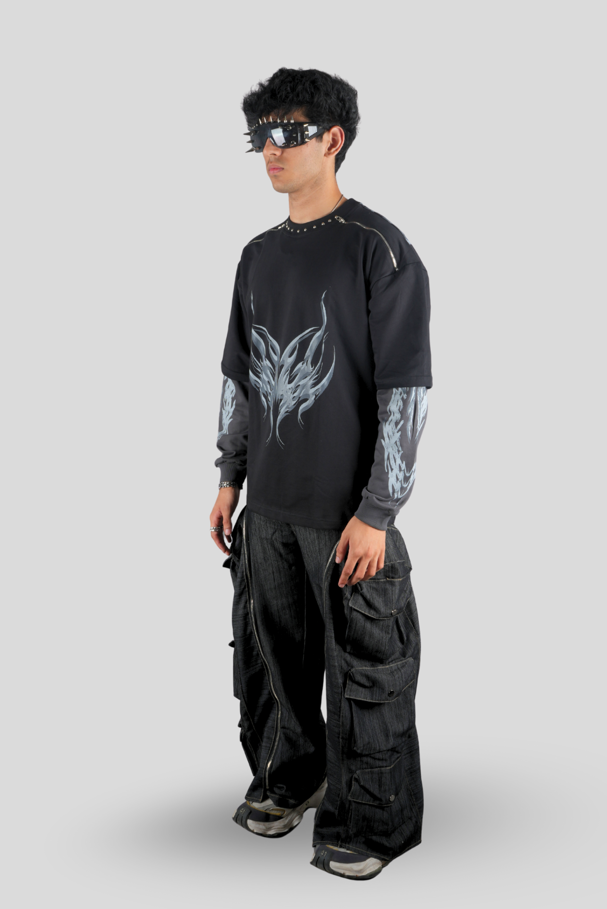 Fit: Oversized Full Sleeves Japanese Dual Material Fit