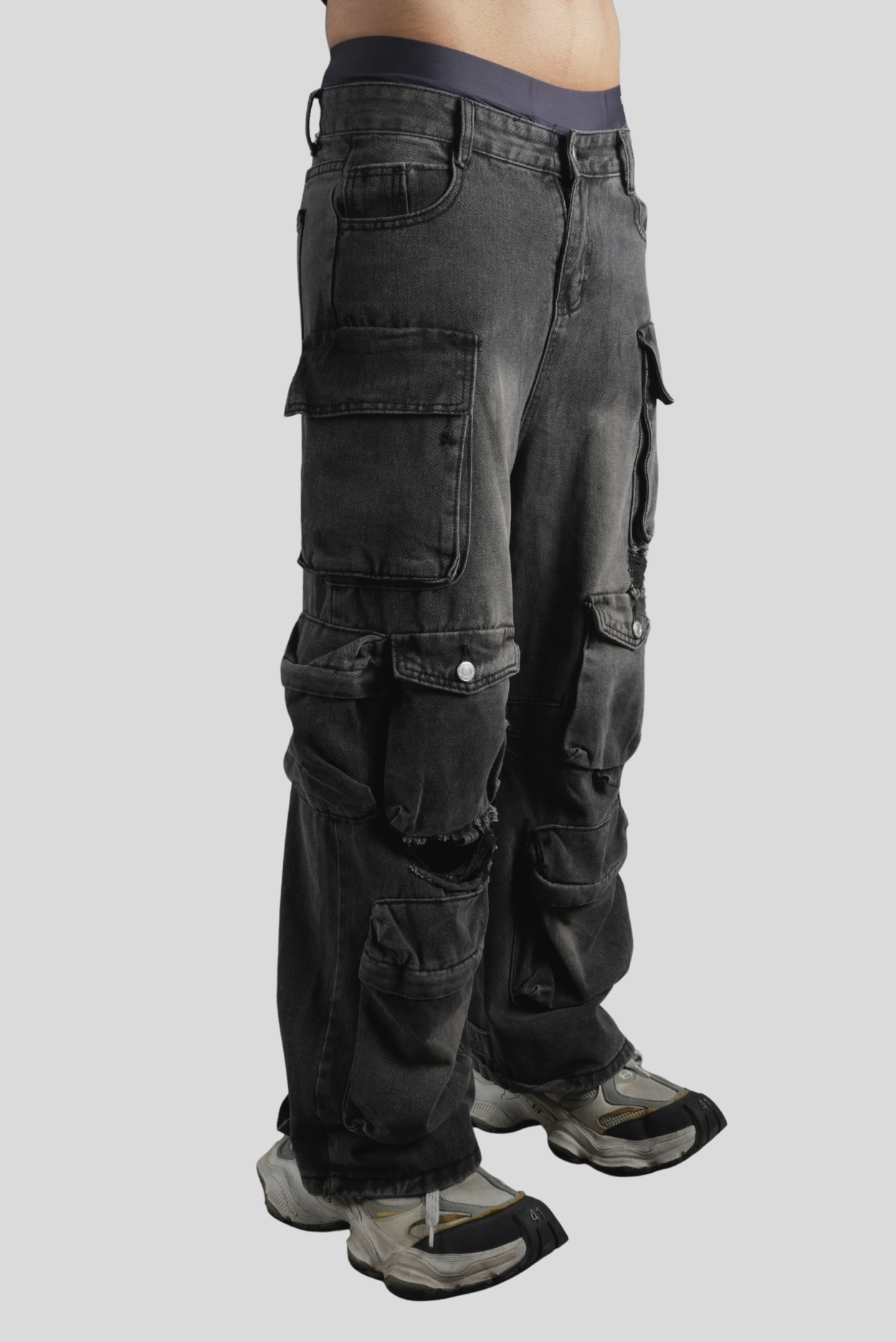 The Rugged Toner Cargos are designed for those who embrace an active, adventurous lifestyle, whether navigating city streets or exploring the outdoors. Crafted from heavyweight washed denim, these technical loose-fit cargos combine workwear durability with a sleek, modern aesthetic. Featuring 10 spacious pockets, they offer ample storage while maintaining a structured, utilitarian look. These cargos are a versatile wardrobe staple, seamlessly blending ruggedness and street-ready fashion.